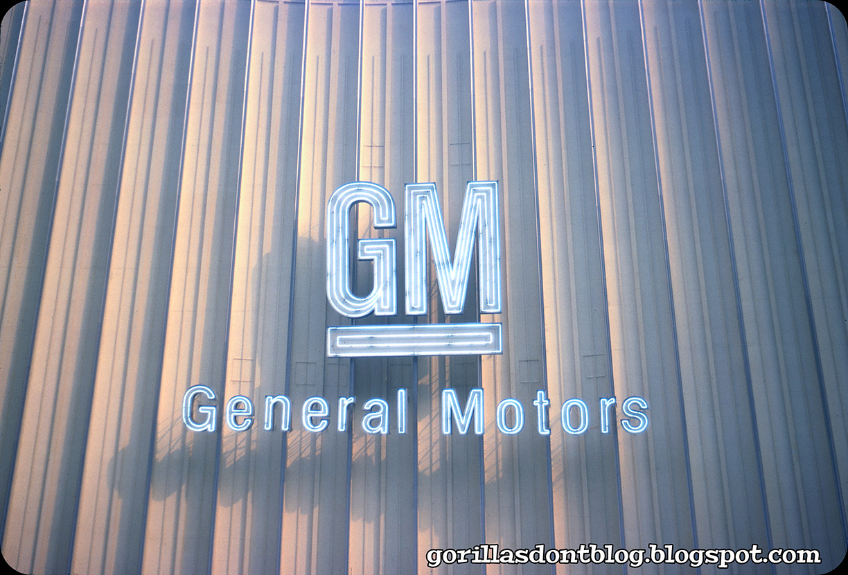 I think the GM logo is understated intentionally…. As the show building’s massive entry fin is its identification. The Ford pavilion’s “sign” was no more intrusive. The idea is that you don’t need a marquee on The Eiffel Tower , Grand Canyon …SPACE MOUNTAIN. The problem designers face it working with large committees or untrained people … who will inevitably say “ where does the sign go!??”