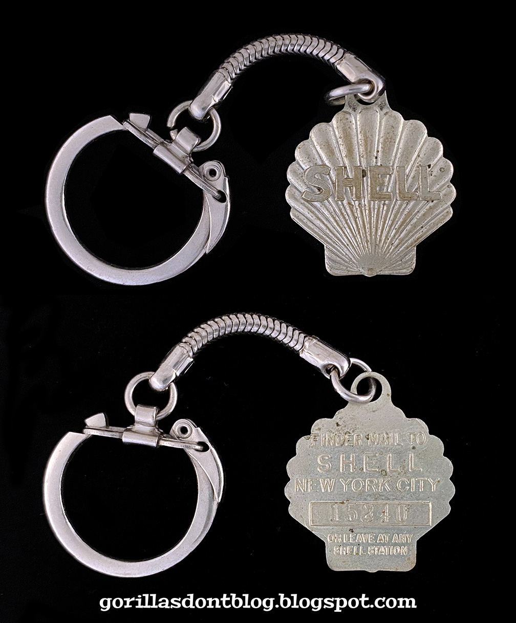 This next item is not rare, I'm sure many tens of thousands were sold at Shell gas stations over the years. It's a humble keychain with the famous scallop shell logo. Should you have had the misfortune to lose your keys, a good samaritan could drop them off at any Shell dealer; thanks to the unique number stamped on the back, they'd know just how to return them to you. Pretty sweet!